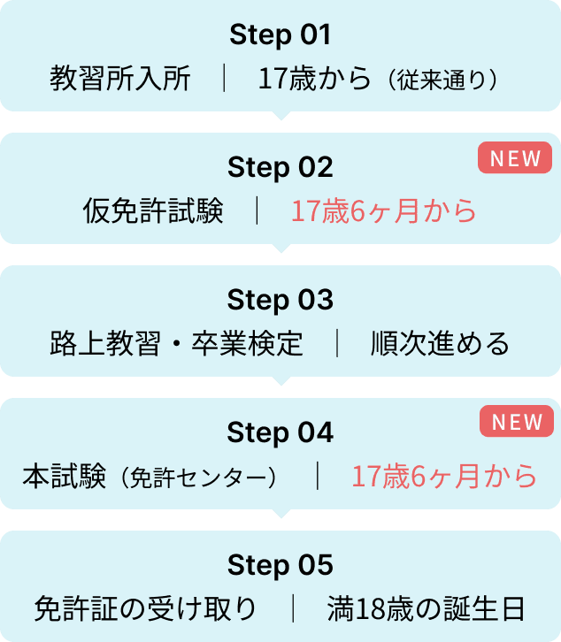 2026年4月から、17歳6ヶ月で仮免・本試験が受けられるようになりました。