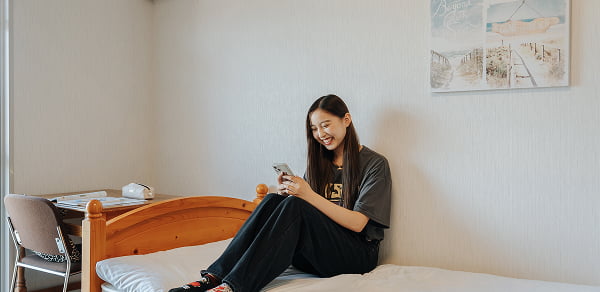 徒歩0分の宿泊所。学校の敷地内なので、安心安全に生活できます。
