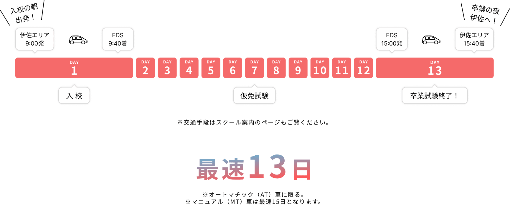 EDSでは、当日に検定を行うことができます。そのため1日早く卒業ができます。
