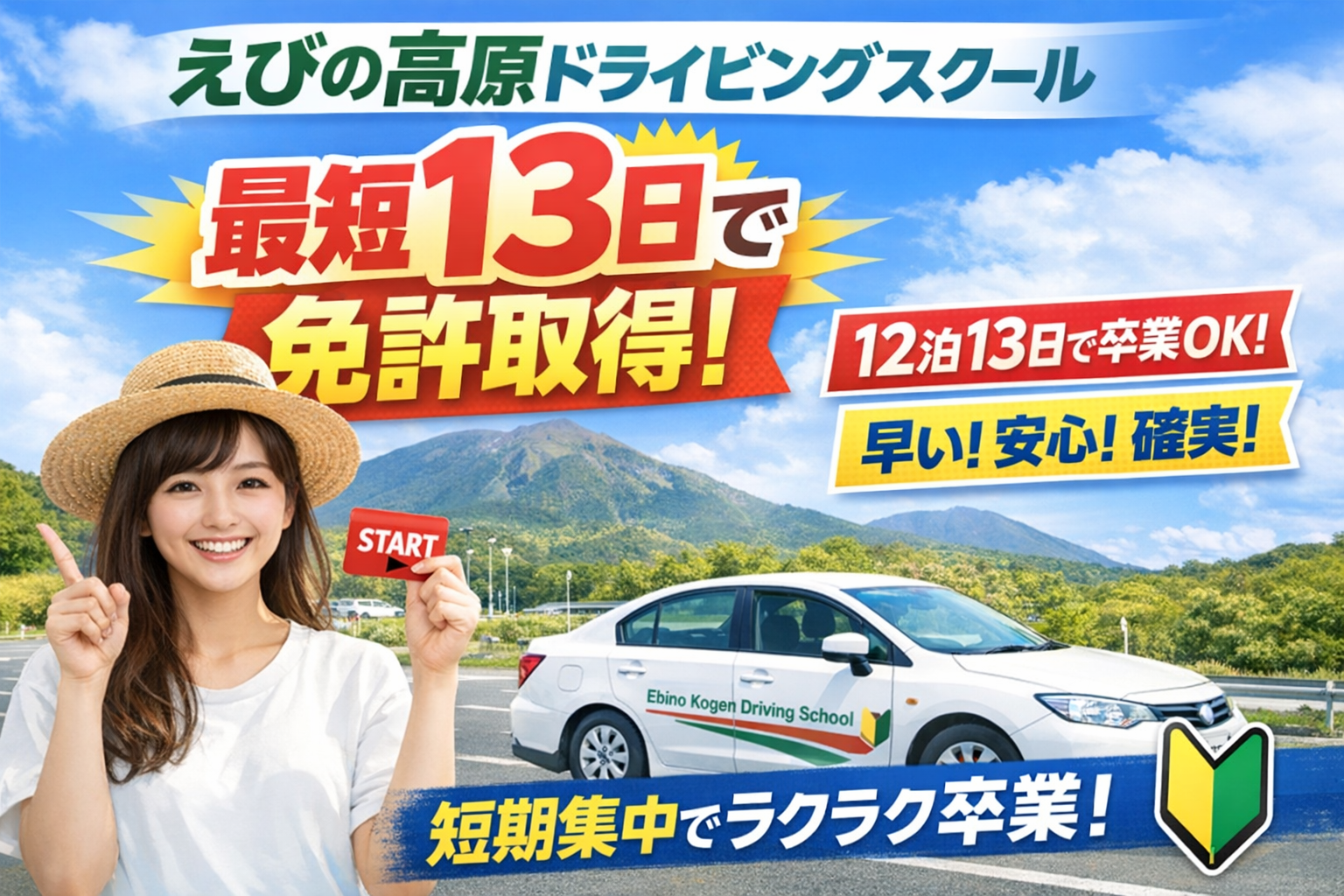 中でも注目されているのが、最短13日で卒業可能なえびの高原ドライビングスクールです。