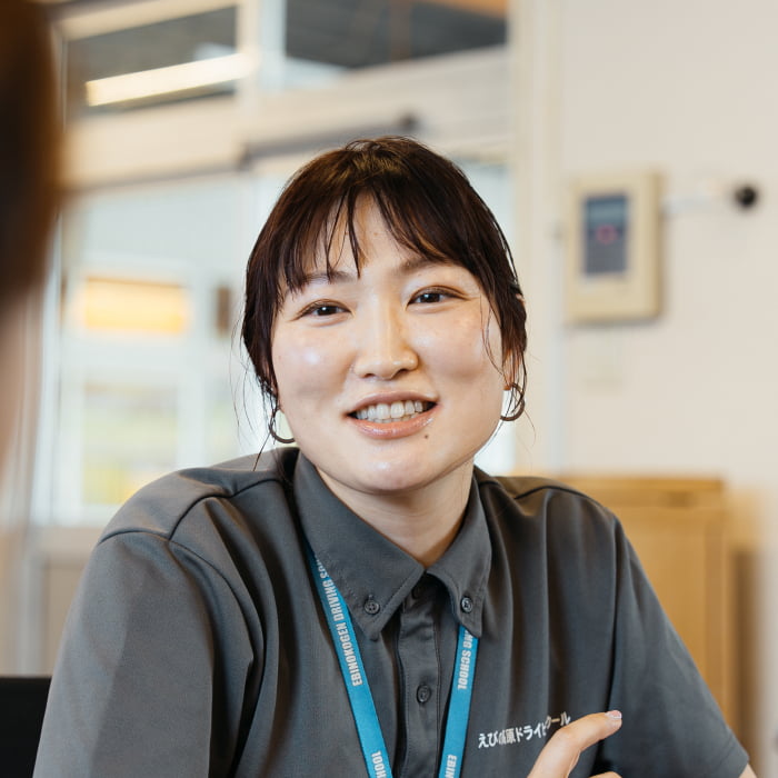 「通っている時、自動車学校に行くのが全然苦痛じゃなくて、すごい楽しかった。そのアットホームな環境を面接に来た時にも感じられた。」