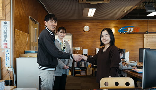 「高校の先生に勧められて、卒業後すぐに就職しました。担当してもらった先生が『明日からおいでよ』と声をかけてくれて。初対面じゃないから、緊張することなく始められましたね。指導員になってからは、生徒の人生の大切な一歩を支えられることにやりがいを感じています。一生懸命な人となら、一緒に頑張れると思います」